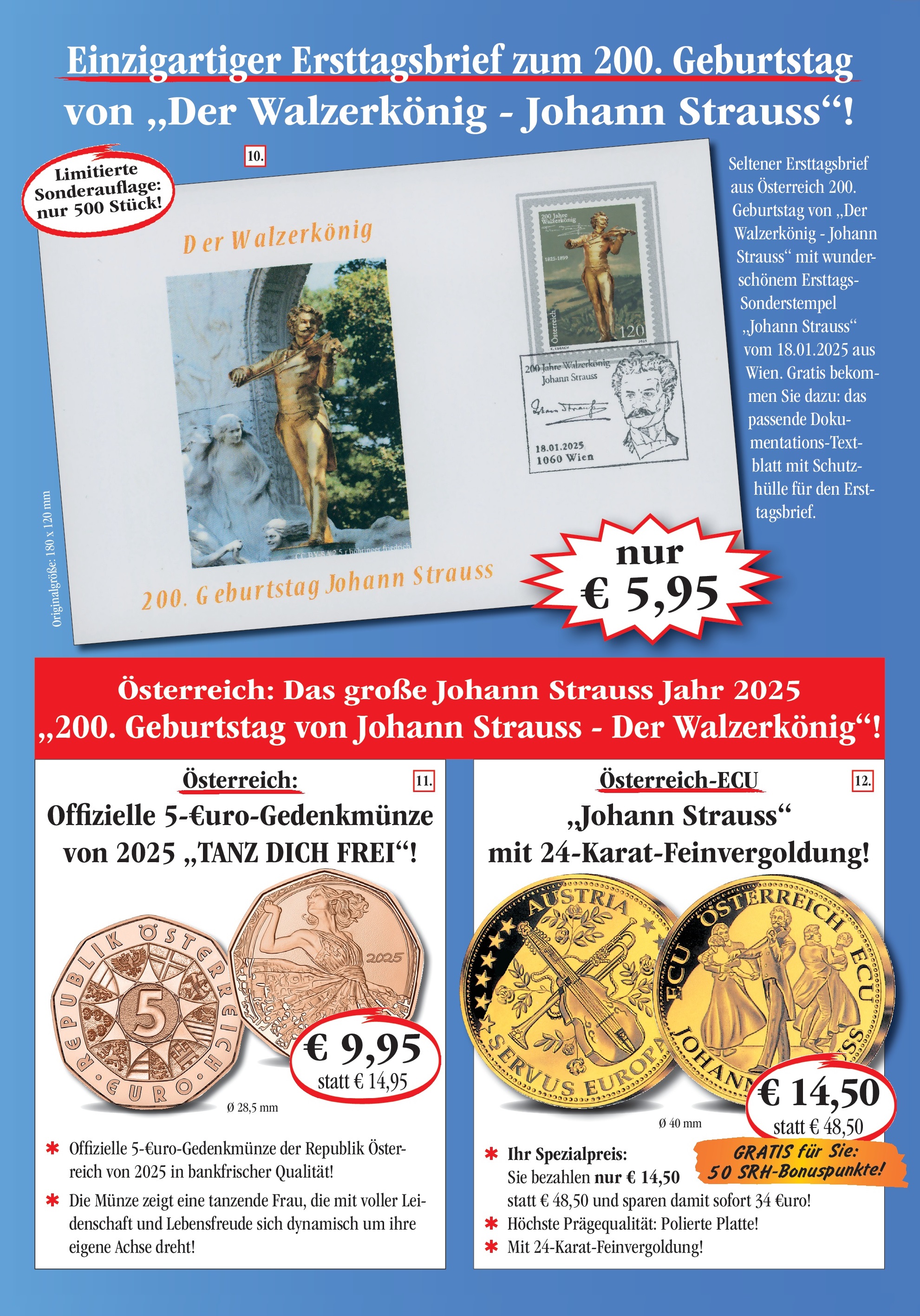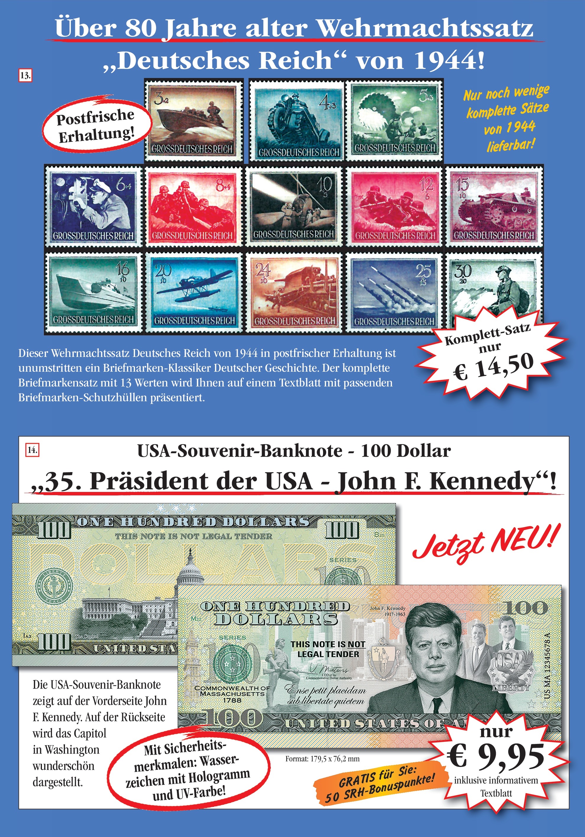 Vertrauens-Garantie/Widerrufsrecht: Ohne Angaben von Gründen können Sie Ihren Auftrag innerhalb von 14 Tagen widerrufen. Eine kurze Nachricht oder Rücksendung der Ware an SRH genügt. Sie tragen die unmittelbaren Kosten für die Rücksendung an Sir Rowland Hill Ltd. GmbH & Co. KG, Buchhorstblick 7a, 38162 Weddel. Es gelten unsere AGB, die Sie unter www.srh-ltd.de einsehen oder schriftlich bei uns anfordern können. Datenschutz-Hinweis: Die Verwendung Ihrer personenbezogenen Daten für Werbung erfolgt vertraulich und nur von SRH. Der Widerruf ist jederzeit möglich: Per Post an SRH oder E-Mail an datenschutz@srh-ltd.de